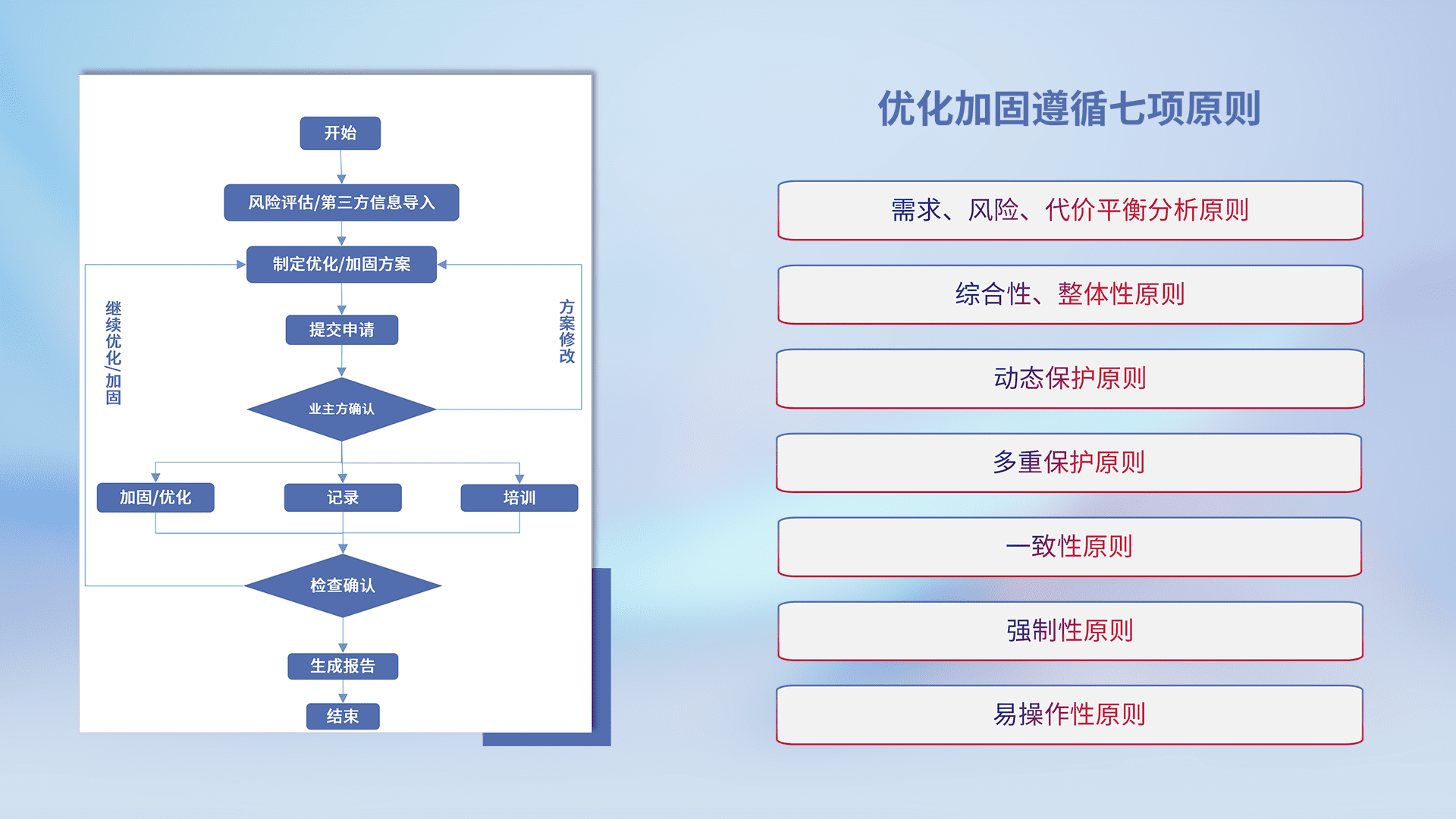最大程度利用现有资产,,,对评估发现的问题进行封堵与整改,,防止漏洞被利用,,提升整体网络安全性,,,为客户带来高标准的优化加固服务。。
